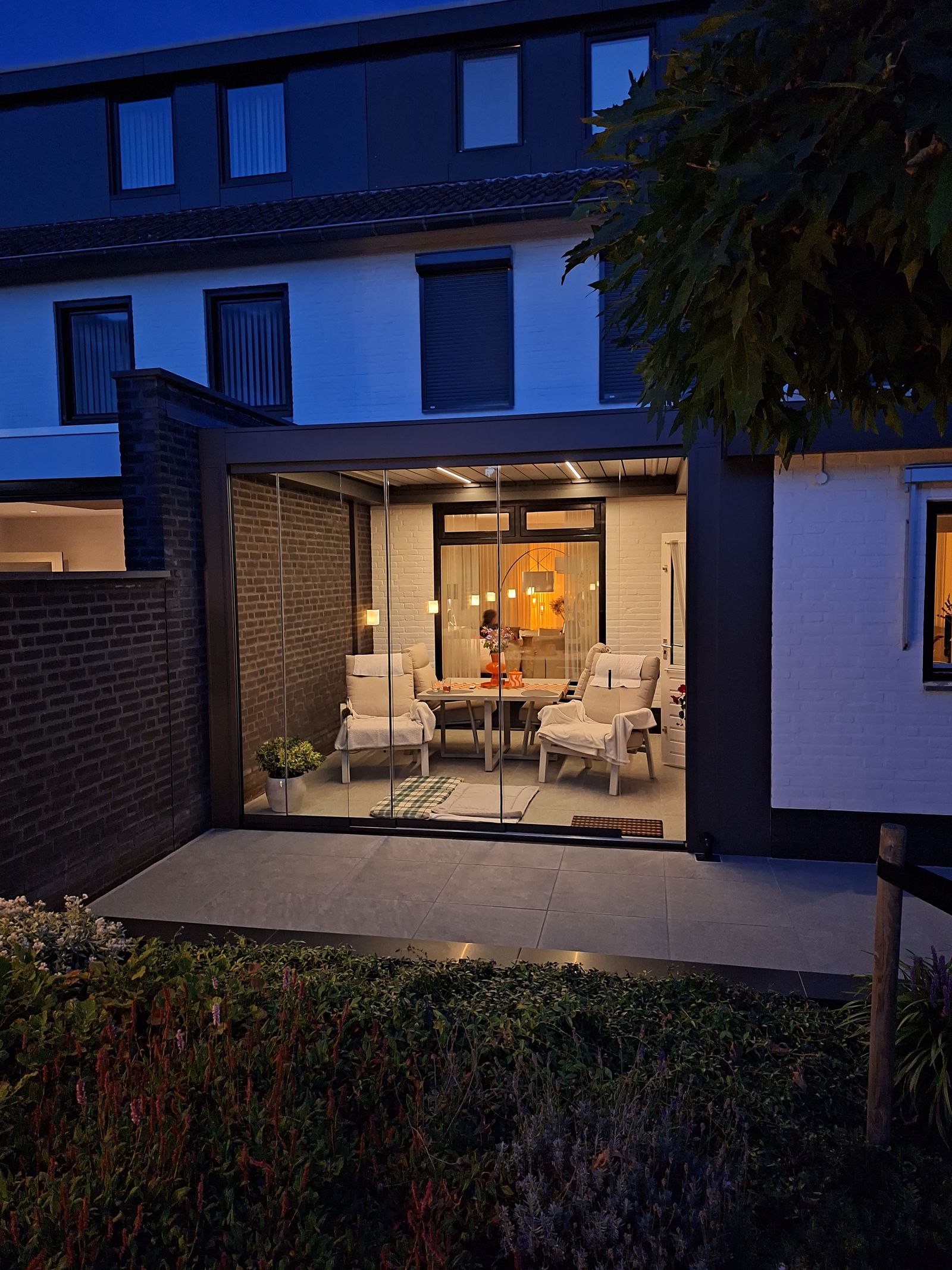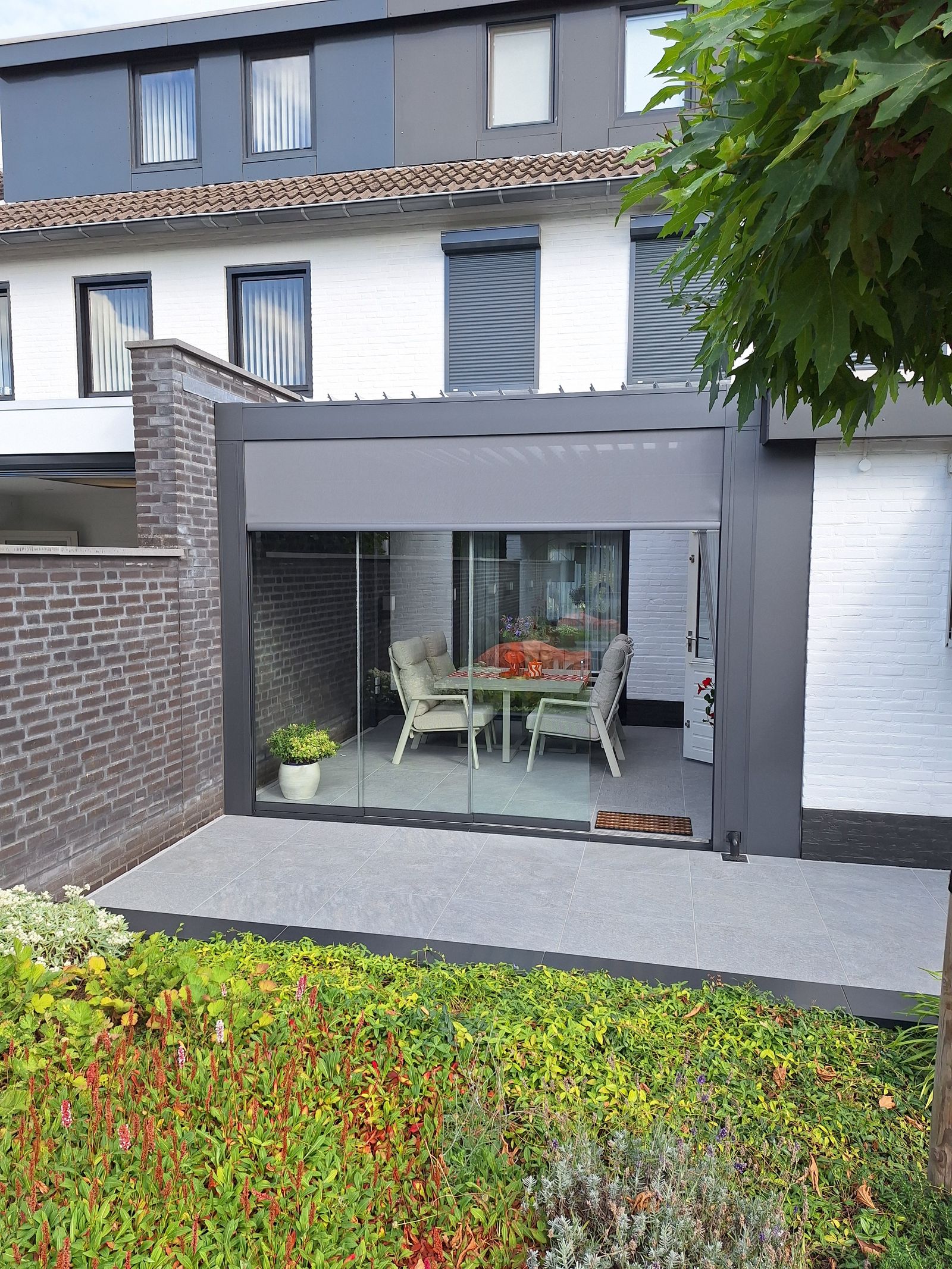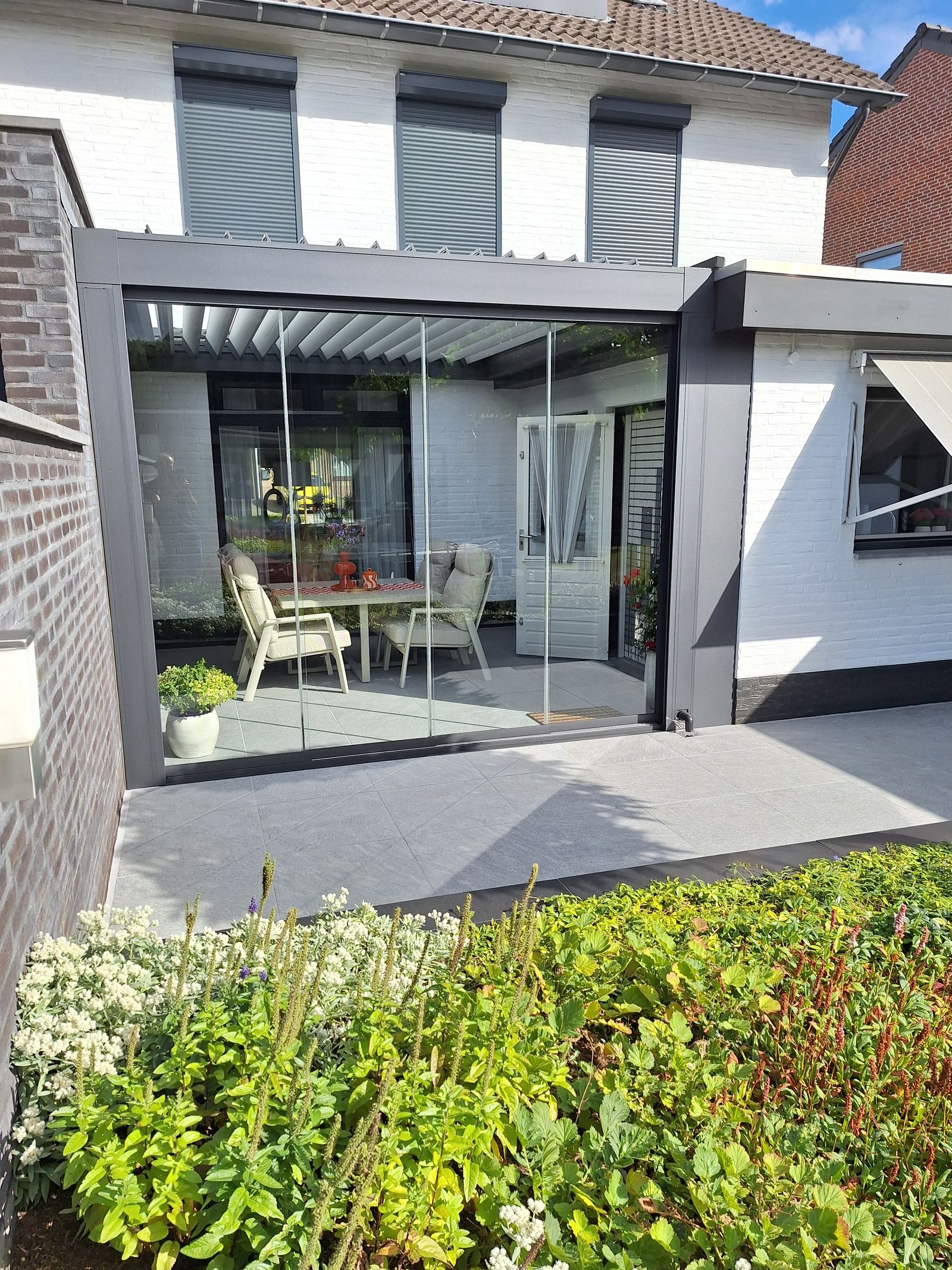 Met lamellen die tot 140° kunnen kantelen, biedt dit dak ultieme flexibiliteit in schaduw en lichtinval. De geïntegreerde LED-verlichting zorgt voor een sfeervolle ambiance, ideaal voor lange avonden buiten. Daarnaast zorgen de schuifwanden en screens voor extra comfort en privacy.