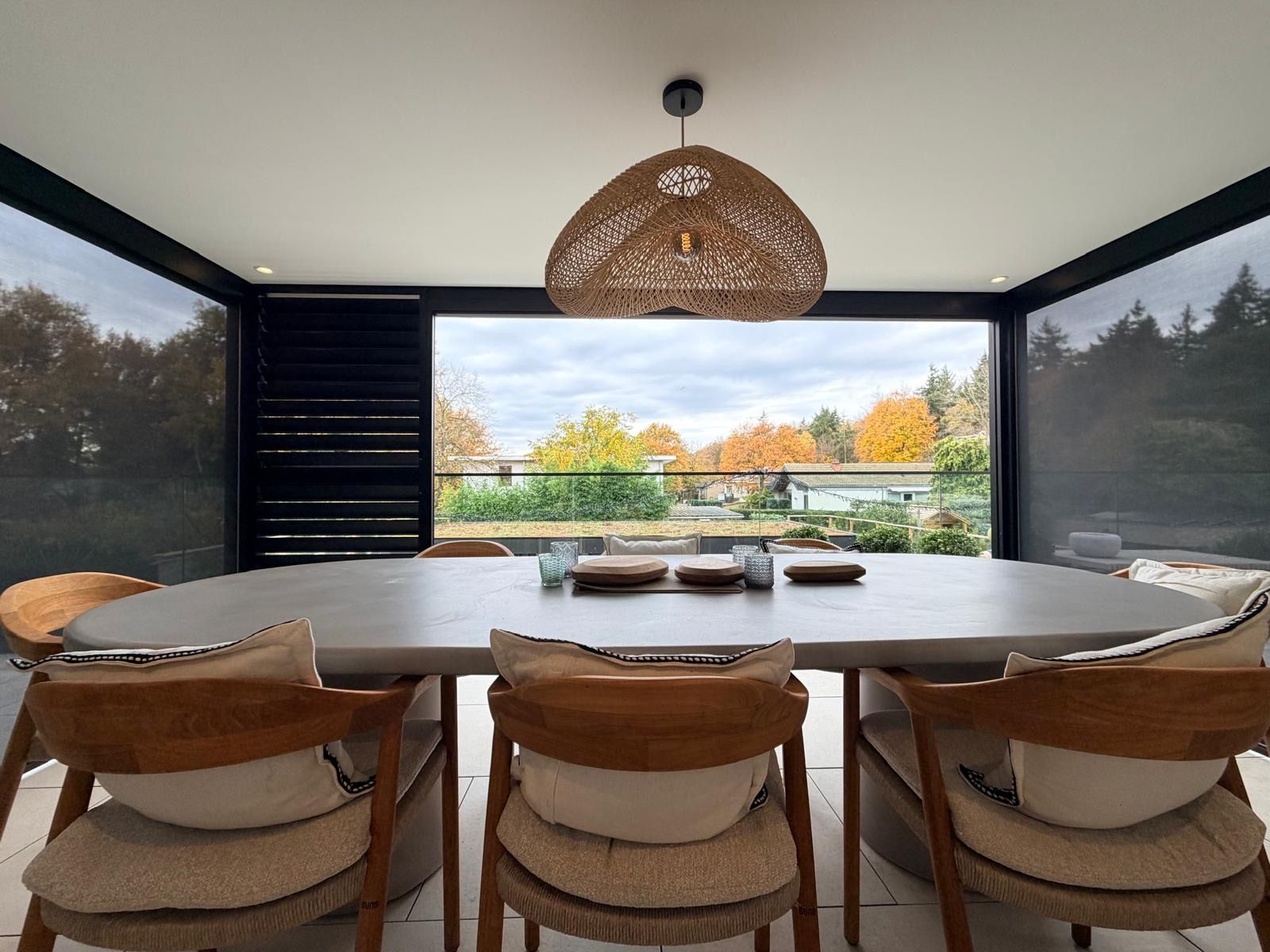 Screens onder je pergola bieden optimale bescherming tegen zon en wind, zorgen voor extra privacy, en creëren een comfortabele buitenruimte in elk seizoen.