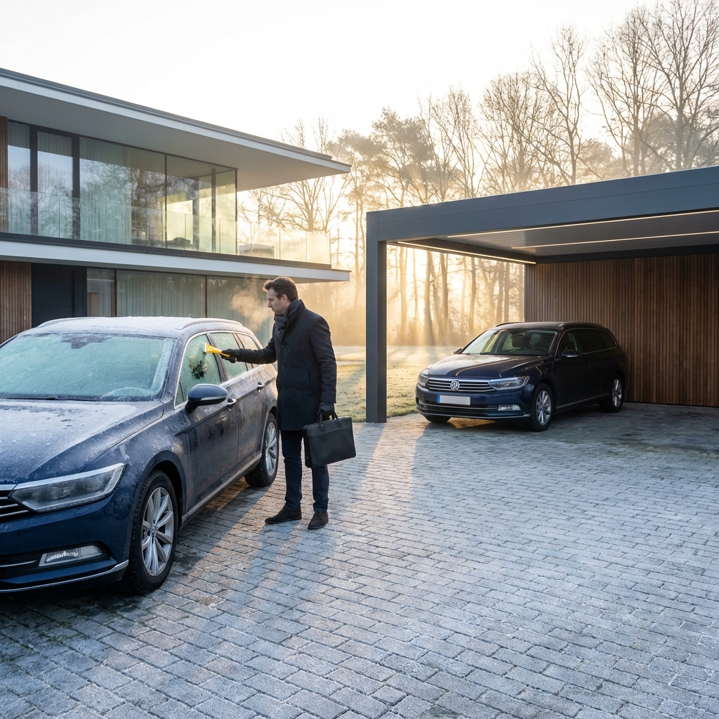 Stel je een winterochtend in Limburg voor: het vriest licht, je bent gehaast en je begint de dag met het krabben van een ijzige voorruit. Die vijf minuten lijken dan plots een eeuwigheid. Een doordacht gekozen carport maakt dat verschil – elke dag opnieuw.