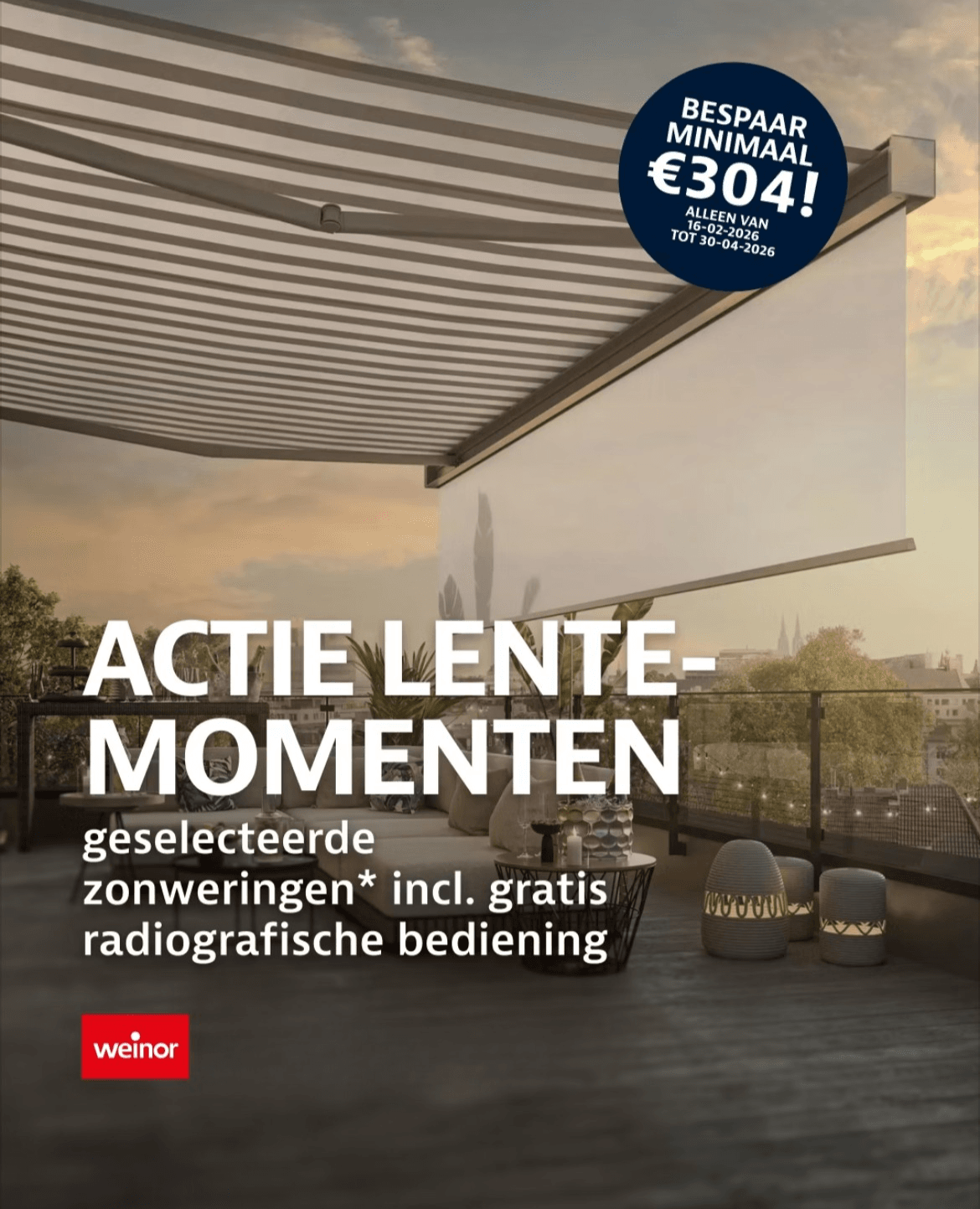 Tijdens onze voorjaarsactie geldt het voordeel op alle zonneschermen. Wil je graag snel weten wat in jouw situatie mogelijk is? Dan maken we graag een voorstel op maat.