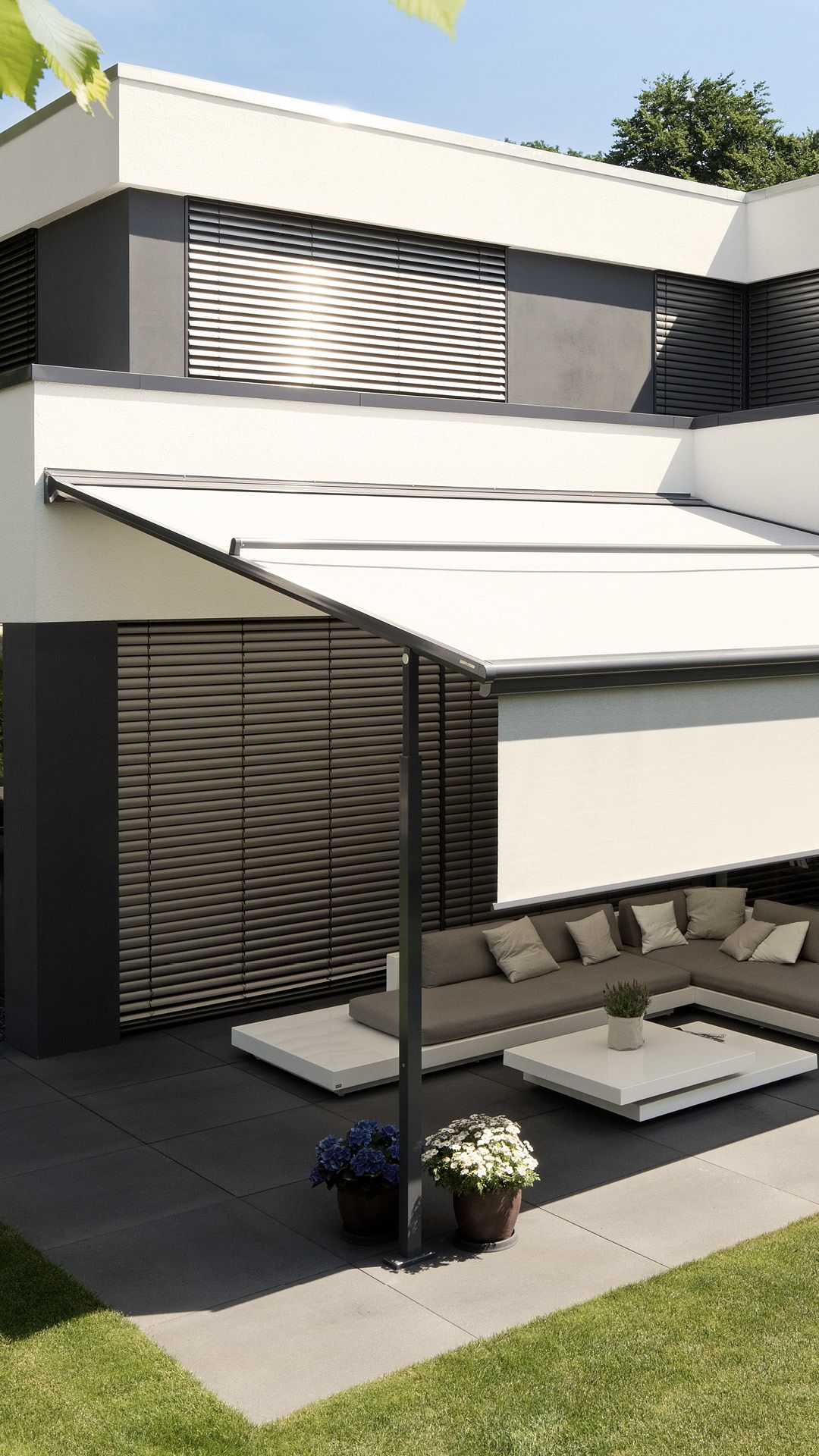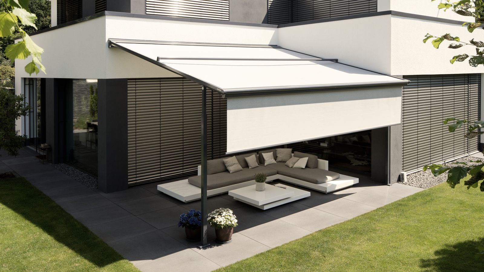 Uw terrasgenot bij vrijwel elk weertype! Met het textiele pergola-zonnescherm Plaza Viva maakt u nu nog vaker en onbezorgder gebruik van uw terras – vrijwel ongeacht het weer. Of u de Plaza Viva nu gebruikt voor schaduw op een zonnige dag, als extreem stabiele weerbescherming bij stevige wind of als slimme regenbescherming tijdens een warm zomers buitje, dankzij de Plaza Viva geniet u zonder onderbreking van de aangename atmosfeer op uw terras.